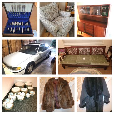 9K, 10K, 14 K Gold Necklaces, 9 K Men's Gold Ring, Sterling Silver Jewelry, Costume Jewelry. 4 yr old Ashley Furniture Love Seat & Chair, Vintage Tables, Instacool A/C, B&D A/C, Royal Albert, 65" LG TV, 4 yr old LazBoy Recliner/Rocker/Swivel Chairs